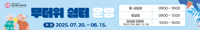 - 7월 20일부터 8월 15일까지 운영…어르신 건강 보호 위한 시원한 휴식처 마련