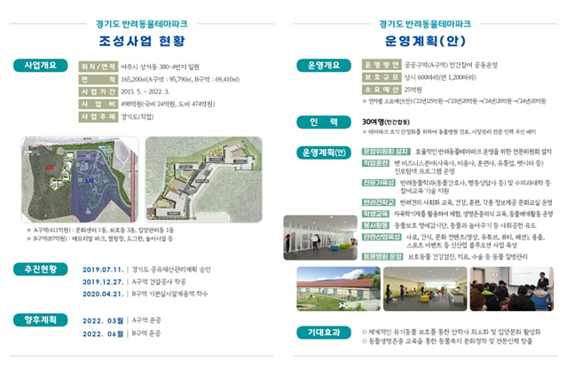 김성식 경기도 축산산림국장은 “반려동물테마파크의 성공과 동물보호복지 실현을 위해서는 도민들의 참여가 가장 중요하다”며 “그간 경기도가 실행해온 동물보호복지 정책과 민간의 전문성을 더해 창의적인 동물보호정책을 적극 추진해 나갈 것”이라고 밝혔다.