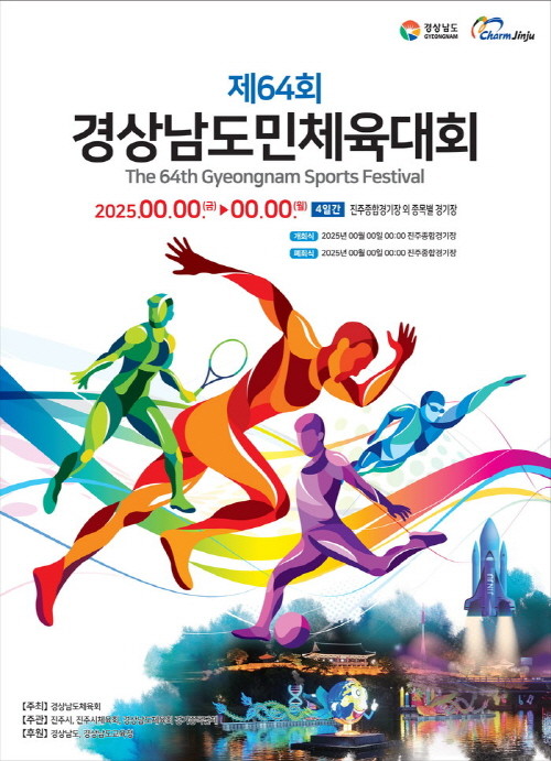 포스터는 역사문화도시이자 우주항공산업 중심도시로 도약하는 진주시의 위상을 강조하는 작품이, 구호는 ‘부강한 진주에서 하나 된 경남의 힘’, 표어는 ‘기적의 땅 진주에서 하나 되는 도민체전’이 선정됐다.