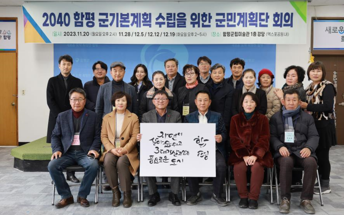 군민계획단이 제안한 함평의 미래비전은 ‘자연이 살아숨쉬고 3대가 살고싶은 풍요로운 도시 함평’이며 ▲가보고 싶은 접근성 좋은 공공체 도시(1분과) ▲젊은 인구가 넘쳐나고 안전이 보장된 생태경제 활력도시(2분과) ▲새로운 바람 누구나 즐거운 행복도시(3분과) 등 분과별 추진전략도 제시했다.