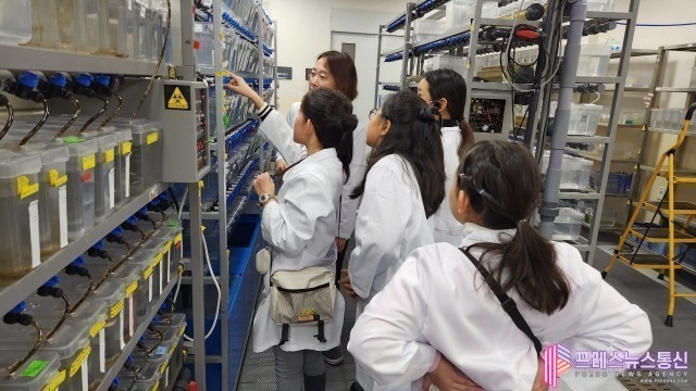 이날 첫 수업에는 ▲모델동물의 특징과 연구 활용 ▲제브라피시 관찰 및 골격염색 실험 등 활동을 토대로 모델동물과 생명과학에 대해 학습하는 시간을 가졌다. 고대 안산병원 제브라피시 사육실은 국내 최대 규모로 연구를 수행 중인 곳이다.