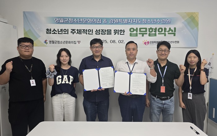 ▲영월군청소년문화의집이 문화의 집 2층 회의실에서 강원특별자치도 청소년수련원과 업무협약을 체결했다. |