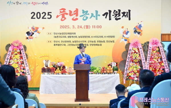[프레스뉴스] 장현준 기자= 안산시(시장 이민근)는 지난 24일 본격적인 농번기를 맞아 농업기술센터 대강당에서 농업인들의 결속을 다지기 위한 ‘2025 풍년농사기원제’를 개최했다고 25일 밝혔다.