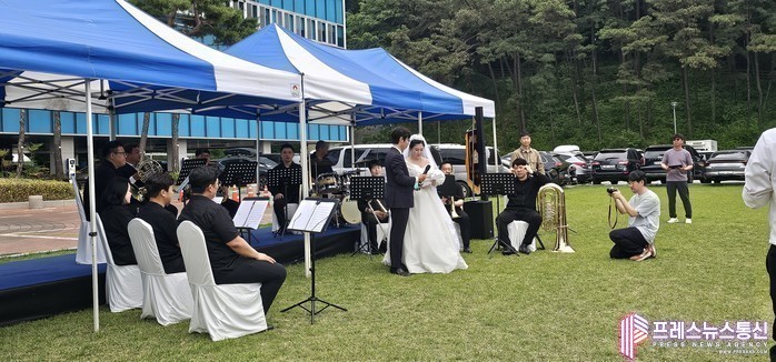 호른연주자인 신랑은 “브라스 앙상블 연주회도 함께 진행할 수 있으면 좋겠다고 생각하던 차에 경기도 옛 청사 잔디마당의 탁 트이고 아름다운 자연에 반해 결혼식을 올리기로 결정했다”면서 “모든 준비를 직접 해야 한다는 어려움도 있지만, 우리만의 특별한 결혼식을 만들 수 있어 즐겁고 행복했다”고 소감을 밝혔다.
