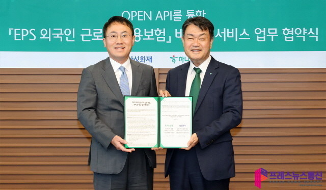 [프레스뉴스] 장현준 기자= 하나은행(행장 이승열)은 지난 11일 하나은행 을지로 본점에서 국내 최초로 삼성화재와 OPEN API를 활용한 『EPS 외국인 근로자 전용보험』 서비스를 위한 업무 협약을 체결했다고 밝혔다.