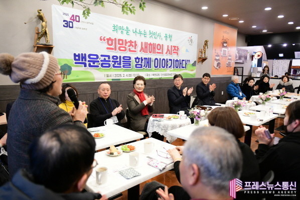 ‘희망찬 새해의 시작 백운공원을 함께 이야기하다’를 주제로 열린 이번 현장 간담회는 백운동 주민의 힐링 공간이자 일출·일몰 명소인 백운공원에서 진행됐다. 현장에서 답을 찾겠다는 이 시장의 제안에 주민들이 직접 고른 현장이었다.