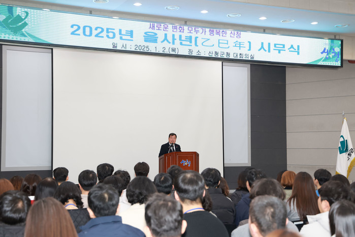 [프레스뉴스] 정재학 기자=산청군은 2일 군청 대회의실에서 ‘2025년 을사년 시무식’을 개최했다고 밝혔다.