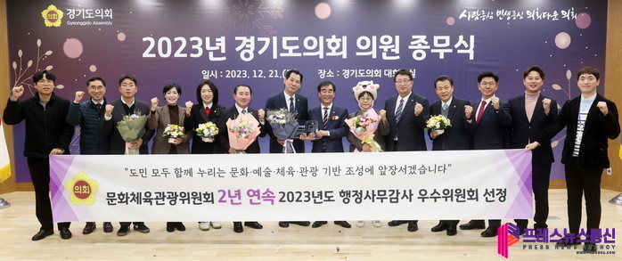 [프레스뉴스] 김대일 기자= 경기도의회 문화체육관광위원회(위원장 이영봉)가 지난 21일에 열린 ‘2023년 경기도의회 의원 종무식’에서 ‘2023년 행정사무감사 우수위원회’로 최종 선정되어 수상의 영광을 안았다.
