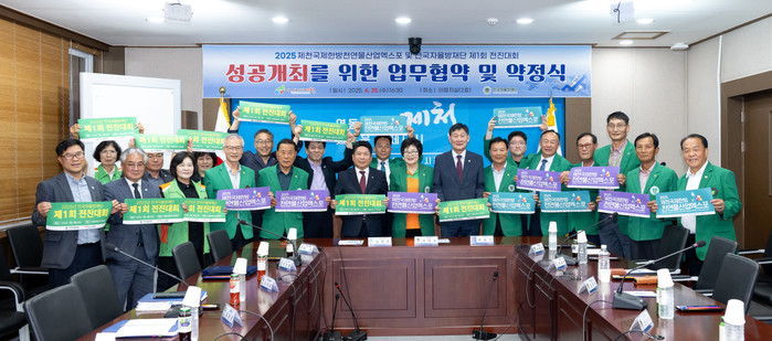 ▲제천시·제천시의회·전국자율방재단, 2025제천국제한방천연물산업엑스포 및 2025전국자율방재단 제1회 전진대회 성공개최 업무협약 체결 |