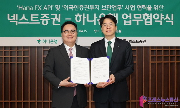 [프레스뉴스] 류현주 기자= 하나은행(은행장 이호성)은 지난 15일 서울 을지로 본점에서 넥스트증권(대표이사 김승연)과 해외 투자자의 국내 주식 투자 환경 개선을 위한 ‘외환거래(FX) 및 외국인 증권투자 보관업무(Custody)’에 관한 업무협약(MOU)을 체결했다고 밝혔다.