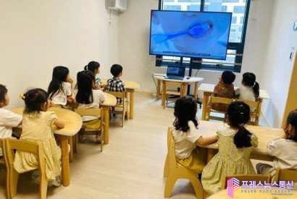 | ▲안산시립 센트럴포레 어린이집에서 아동을 대상으로 '이튼튼 구강건강교실' 동영상 교육을 진행하고 있다.(사진=안산시) |