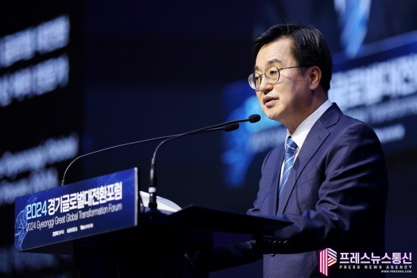| ▲지난 24일 오전 킨텍스에서 열린 2024 경기글로벌대전환포럼 개막식에서 김동연 경기도지사가 개회사를 하고 있다.(사진=경기도) |
