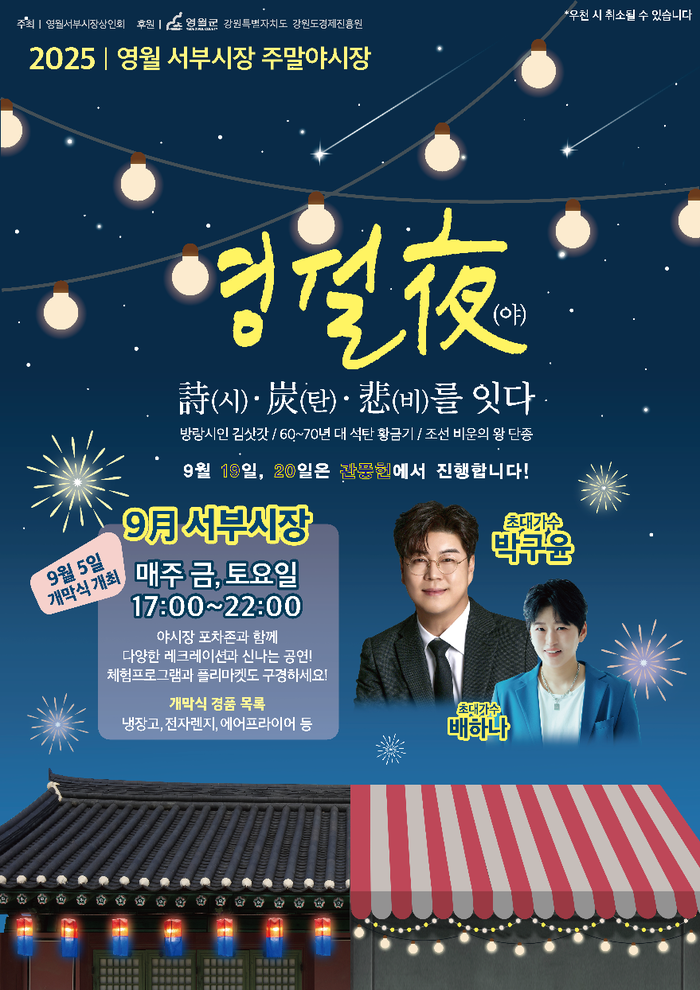 영월서부시장상인회는 행사 기간 쾌적하고 안전한 환경을 조성하고, 주민과 관광객 모두가 편안히 즐길 수 있는 자리를 마련하기 위해 준비에 최선을 다하고 있다. 또 이번 야시장을 통해 전통시장의 활력이 되살아나고 지역경제에도 긍정적인 효과가 이어질 것으로 기대한다.