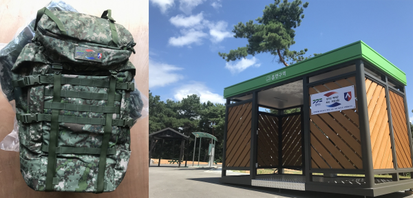 | ▲ 신형 야전배낭 및 22년 권역별 훈련대 개소를 대비한 흡연부스(사진=경기도) |