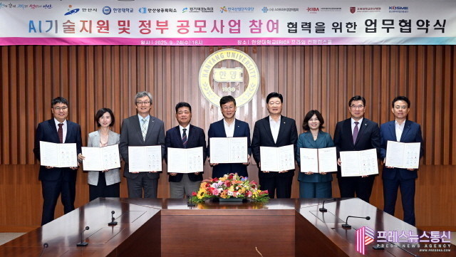 안산시(시장 이민근)는 지난 24일 한양대학교ERICA 프라임 컨퍼런스홀에서 ‘AI기술지원 및 정부 공모사업 참여 협력을 위한 업무협약식’을 개최했다고 25일 밝혔다.