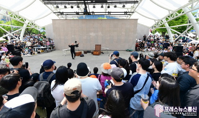 | ▲지난 4일 개막한 안산국제거리극축제 현장인 안산문화광장에서 시민들이 자유롭게 즐길 수 있는 다채로운 공연이 펼쳐지고 있다.(사진=안산시) |