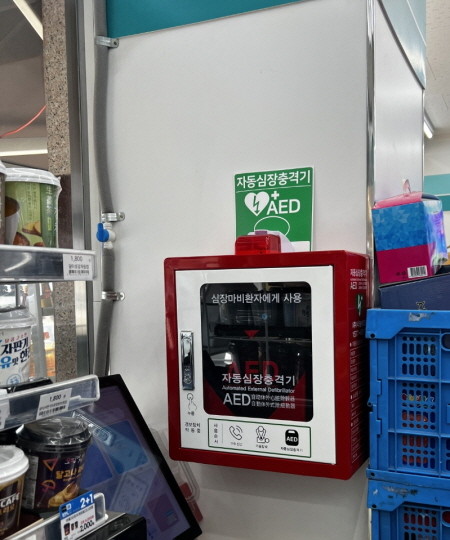 | ▲안산시가 24시간 운영하는 편의점에 설치한 자동심장충격기(AED)사진=안산시 |