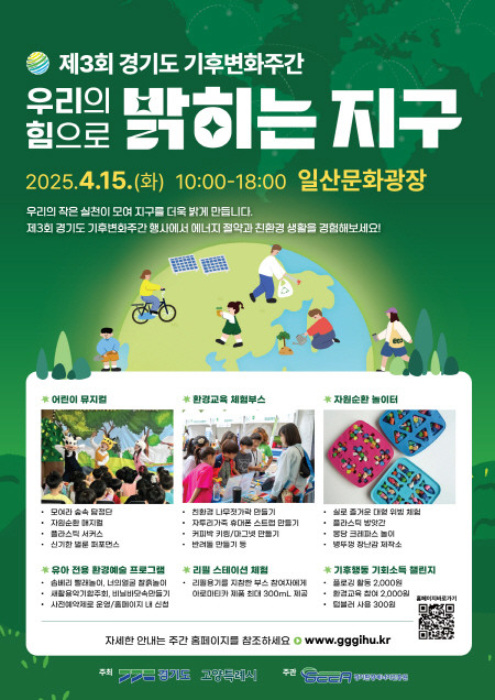 지구의 날 기념행사는 4월 15일 일산문화광장에서 열린다. 도민들의 기후위기 인식을 제고하고 생활 속 기후행동을 유도하기 위해 ‘우리의 힘으로 밝히는 지구’라는 주제로 열린다.