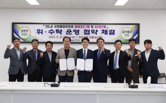 [전남=프레스뉴스] 신상균 기자= 전남 진도군이 지난 21일 진도군청 회의실에서 (사)한국해양소년단연맹과 ‘진도국민해양안전관 운영 위‧수탁’ 업무협약식을 가졌다.