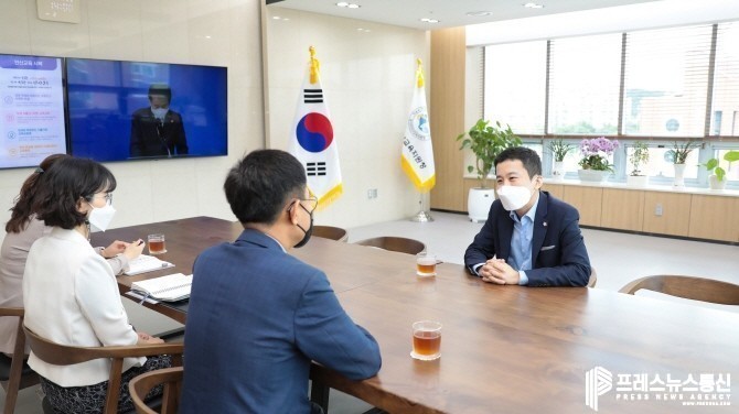 ▲ 송바우나 의장이 지난해 8월 31일 안산교육지원청에서 교육지원청 관계자들과 지역 교육 현안에 대해 협의하고 있다. (사진=안산시의회) |