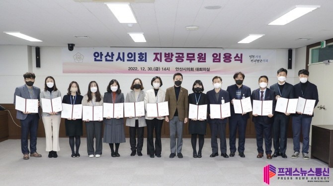 | ▲ 안산시의회가 올해 1월 1일자로 의회사무국 인사를 단행한 가운데 지난해 12월 30일 의회 대회의실에서 의회 지방공무원 임용식을 개최했다.(사진=안산시의회) |