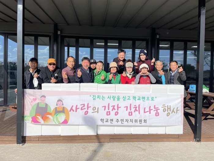 학교면 주민자치위원회(위원장 양문오)는 지난 28일 학교면에 위치한 학나래복지센터 경로식당에서 관내 경로당 및 독거노인 등 소외계층을 돕기 위해 ‘2023년 사랑의 김장 나눔 행사’를 진행했다.