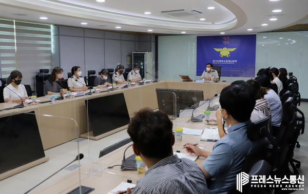 ▲지난 26일 오후, 북부소방재난본부 6층 재난대책회의실에서 북부권역 11개소방관서 여성고충상담원들과 건의사항 등 자유롭게 토론을 하고 있다.(사진=경기도북부청) |