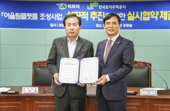 [전남=프레스뉴스] 강래성 기자= 목포시와 LH(한국토지주택공사)가 지난 26일 통합공공임대주택과 공공편익시설(어울림플랫폼) 조성을 위한 공동사업 실시협약을 체결했다.
