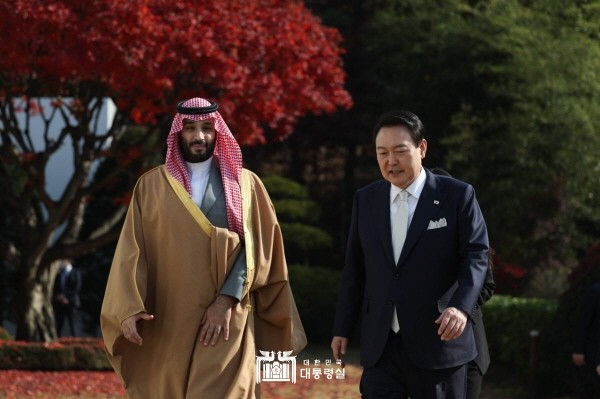▲ 지난해 11월 17일 윤석열 대통령은 모하메드 빈 살만 사우디 왕세자 겸 총리와 회담을 갖는 모습 (사진=대통령실) |