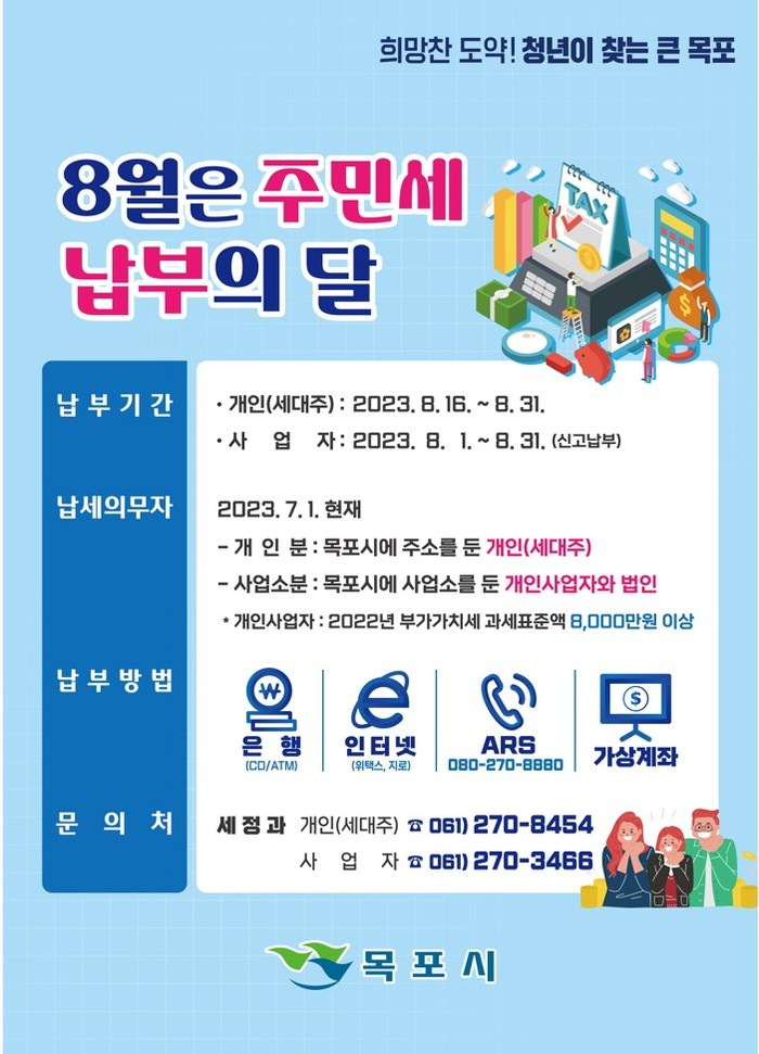 | ▲목포시, 8월은 주민세 납부의 달 홍보 포스터(사진제공=목포시) |