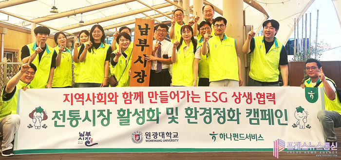 [프레스뉴스] 류현주 기자= 하나금융그룹 관계사 하나펀드서비스(대표이사 김덕순)는 전북특별자치도 익산시 남부시장에서 지역사회와의 상생ㆍ협력을 위한 「전통시장 활성화 및 환경정화 캠페인」을 실시했다고 밝혔다.