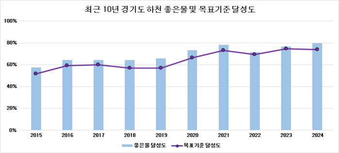 ▲최근 3년간 경기도 하천 ‘좋은물’ 및 목표기준 달성도 그래픽(사진=경기도) |