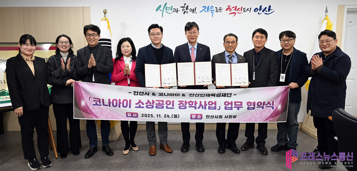 [프레스뉴스] 장현준 기자= 안산시(시장 이민근)는 지난 24일 코나아이 및 안산인재육성재단과 ‘코나아이 소상공인 장학사업’ 추진을 위한 3자 협약을 체결했다고 25일 밝혔다.