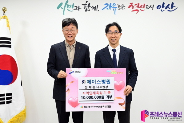 [프레스뉴스] 장현준 기자= 안산시(시장 이민근)는 지난 15일 에이스병원(대표원장 정재훈)으로부터 관내 취약계층 자녀의 교육지원과 지역 인재 육성을 위한 장학금 1,000만 원을 안산 인재육성재단을 통해 기탁받았다고 16일 밝혔다.