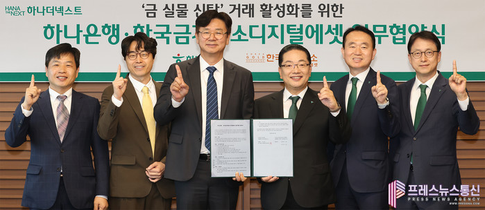 [프레스뉴스] 류현주 기자= 하나은행(은행장 이호성)은 한국금거래소디지털에셋과 금(金) 실물 거래 활성화를 위한 업무협약을 체결하고, 금융권 최초로 『금 실물 신탁』 서비스를 선보인다고 밝혔다.
