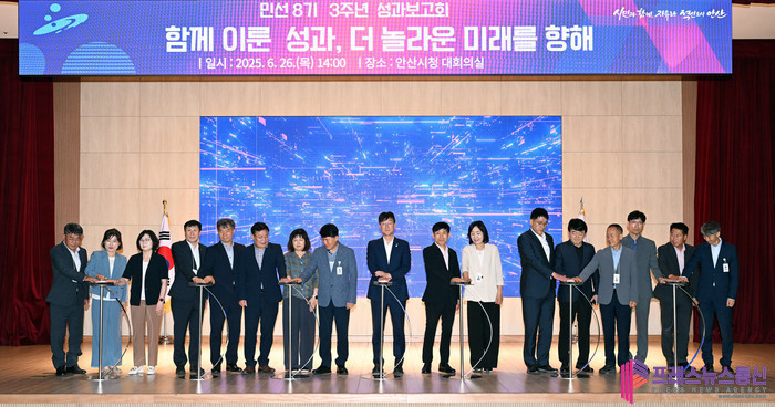 [프레스뉴스] 장현준 기자= 안산시가 민선 8기 3주년을 맞아 안산의 미래를 위한 방향성과 실천 과제를 논의하는 자리를 마련했다. 안산시(시장 이민근)는 지난 26일 안산시청 대회의실에서 ‘민선 8기 안산시 3주년 성과보고회’를 개최했다고 27일 밝혔다.