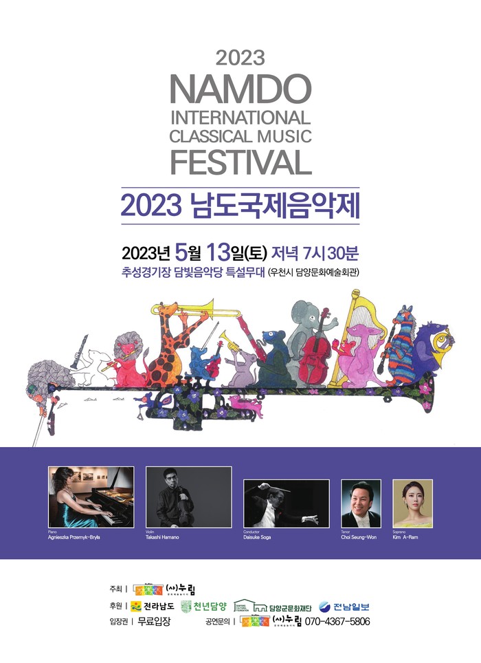 [전남=프레스뉴스] 박정철 기자= 제14회를 맞는 전남의 대표 클래식 페스티벌 ‘남도국제음악제’가 5월 13일 오후 7시 30분부터 추성경기장 담빛음악당 무대에서 개최된다.