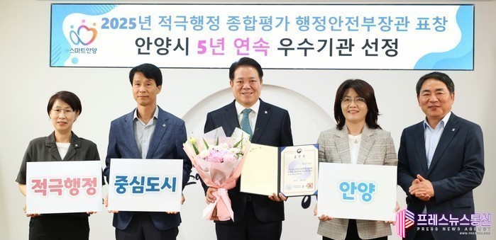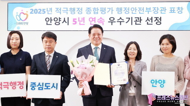 [프레스뉴스] 장현준 기자= 안양시는 행정안전부(이하 행안부) 주관 ‘2025년 지자체 적극행정 종합평가’에서 5년 연속 우수기관으로 선정된 데 이어 행안부 장관상을 수상했다고 30일 밝혔다.
