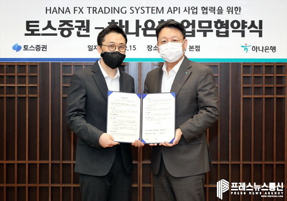 [프레스뉴스] 김대일 기자= 하나은행(은행장 박성호)은 지난 15일 오후 을지로 하나은행 본점에서 토스증권(대표이사 오창훈)과 24시간 FX 거래를 위한 전략적 업무협약(MOU)를 체결했다고 밝혔다.