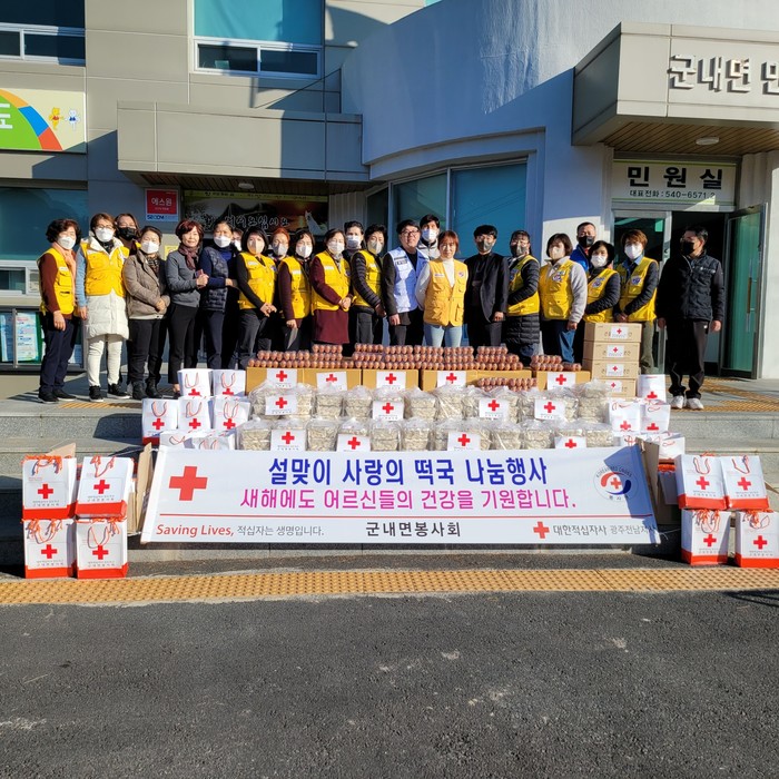 사랑의 ‘떡국 떡’ 나눔 봉사는 군내면 적십자분회가 매년 진행하고 있는 봉사활동이다.