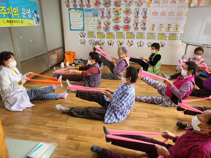 | ▲화순군 보건소 마을주치의가 진행하는 건강체조 프로그램(사진제공=화순군) |