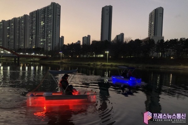 | ▲지난해 안산호수공원에서 시민들이 해양아카데미 페달보트 체험(야간)을 하고 있다.(사진=안산시) |
