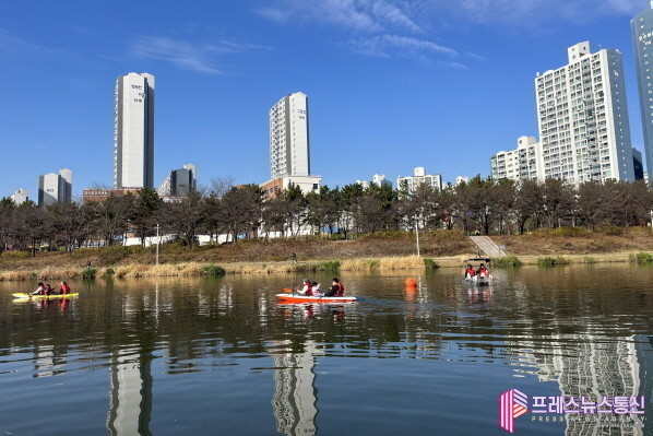 | ▲지난해 안산호수공원에서 시민들이 해양아카데미 페달보트 체험을 하고 있다.(사진=안산시) |