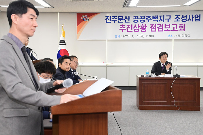 [프레스뉴스] 정호일 기자= 진주시는 11일 시청 상황실에서 조규일 진주시장과 LH, 관련 부서, 용역회사 등이 참석한 가운데 ‘진주문산 공공주택지구 추진상황 점검보고회’를 개최했다.