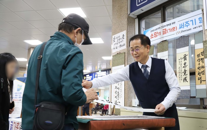 한편 신명섭 서예가는 1998년부터 전국 병원과 공공기관을 돌며 붓글씨를 통한 위로와 희망 나눔 활동을 이어오고 있다.