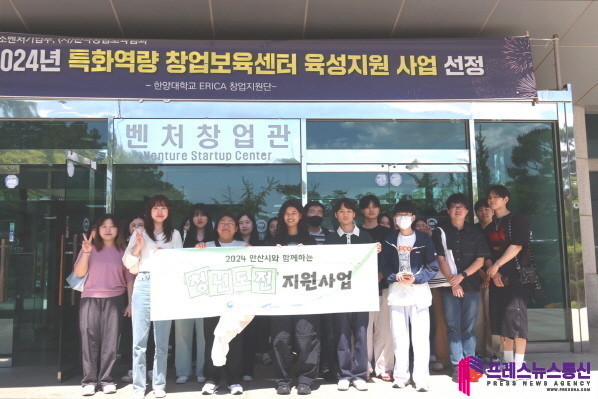 | ▲한양대학교 에리카 창업보육센터에서 기념 촬영 사진(사진=안산시) |