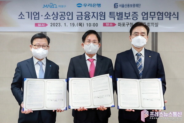 고객과 동반성장의 첫 출발로 우리은행은 지난 19일 마포구청, 서울신용보증재단과 마포구 관내‘소기업·소상공인 금융지원 업무 협약식’을 체결했다.