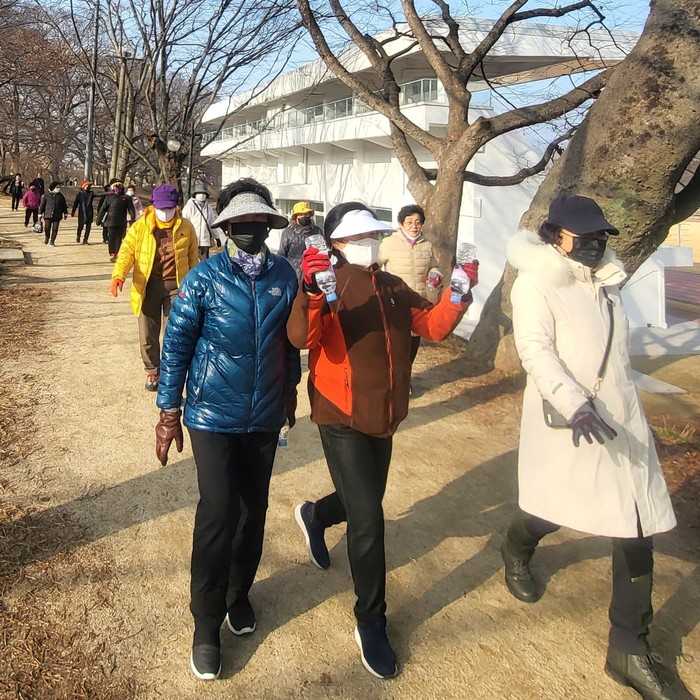 | ▲담양군 모바일 걷기 앱 '워크온'을 통해 건강걷기를 하고 있는 주민들(사진제공=담양군) |