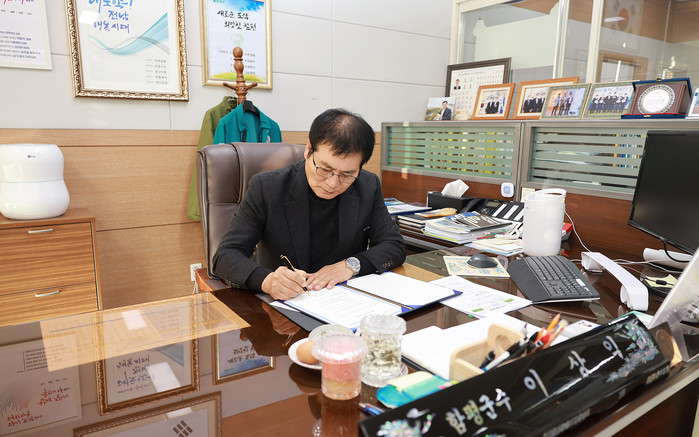 | ▲이상익 함평군수가 2025년 새해를 맞아 청렴 서약서에 서명하고 본격적인 새해 업무를 시작했다./함평군 제공 |