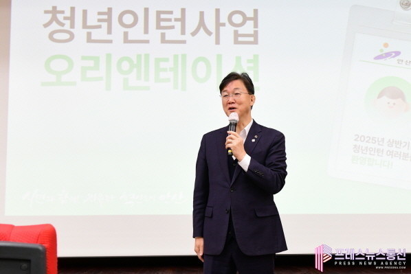 | ▲이민근 안산시장이 2025년 상반기 청년인턴 오리엔테이션에서 인사 발언을 하고 있다.(2025. 03. 04.)사진=안산시 |